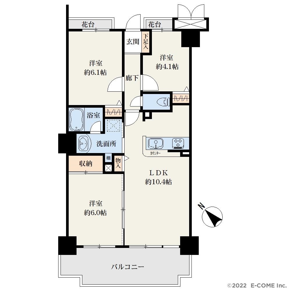 | 間取 | 3LDK (LD10.4帖、洋室6帖、洋室6.1帖、洋室4.1帖) | ||