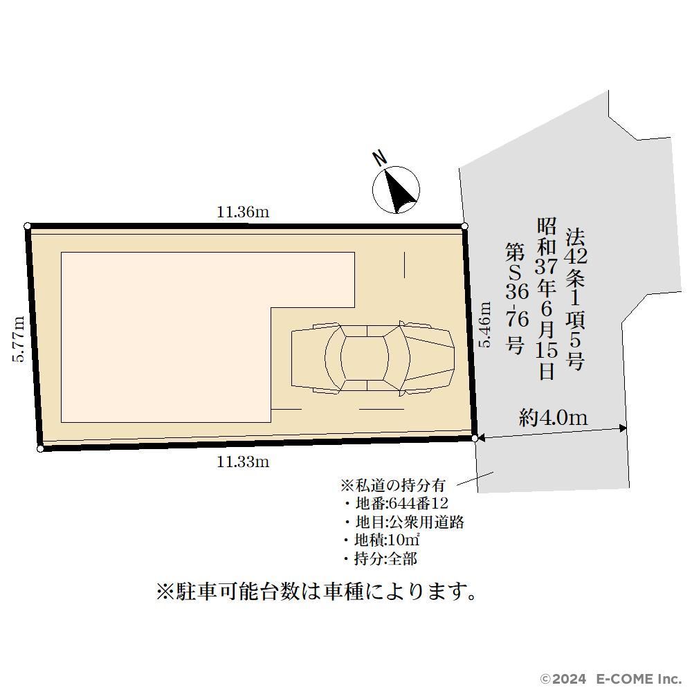| 土地面積 | 63.72m² (私道10m²別に有、私道持分比率:1/1、19.72坪) | ||