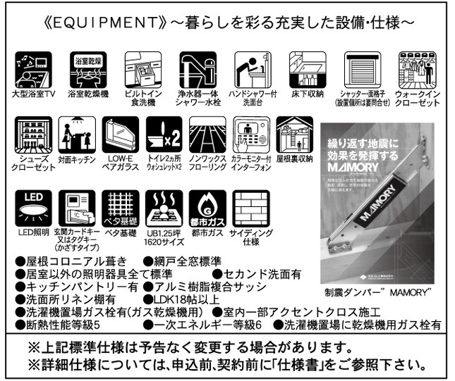 閑静な住宅地LDK15帖以上制震構造床下収納小屋裏収納複層ガラス食器洗浄機ガスコンロシステムキッチンカウンターキッチン3口以上コンロパントリー(食器・食品の収納庫)トイレ2ヶ所温水洗浄便座シャワー付洗面台浴室乾燥機追焚機能TV付浴室浴室に窓ウォークインクローゼットシューズインクローゼットTVモニタ付インターホンEV車充電設備