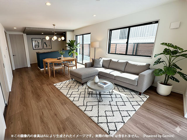 ※空間のイメージ・雰囲気をよりリアルにお伝えできるよう撮影した360度画像です。※PC・スマートフォン・VRゴーグルなどで、物件の中を自由に歩き回るようなバーチャルツアー体験が可能です。※CG合成画像は実際の物件と多少異なる場合がございます。