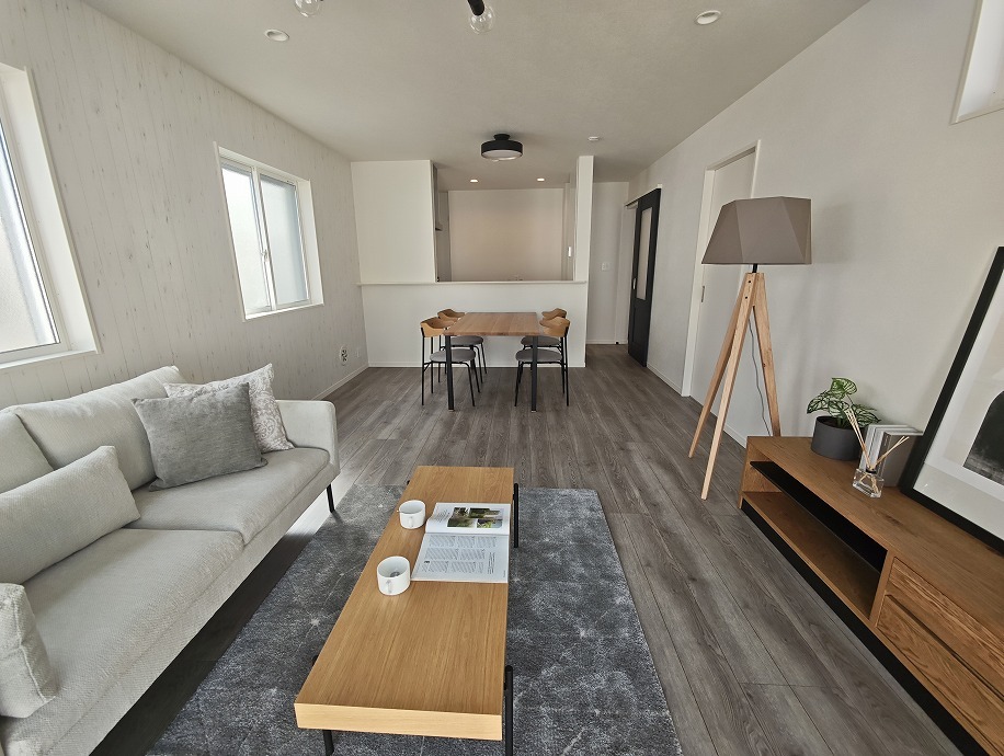 6号棟(床・建具、大建工業:ラスティックペカン柄、リビング扉:アイアンブラック、他扉:ダルブラウン)