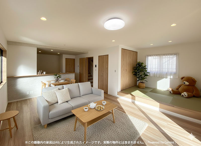 *リビングに3帖の畳コーナー有
