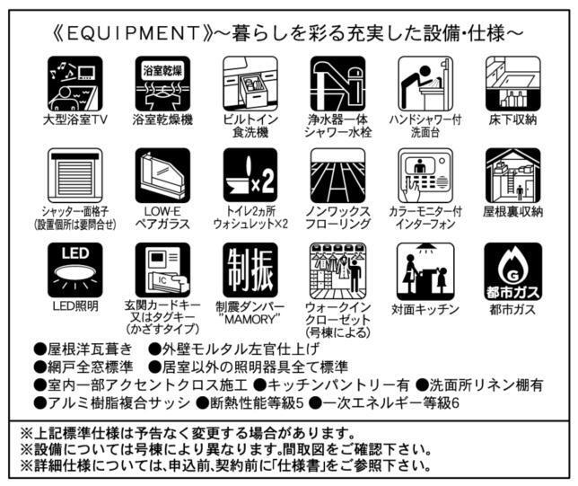 閑静な住宅地LDK15帖以上制震構造省エネ・エコ住宅BELS/省エネ基準適合(認定書あり)床下収納全居室収納小屋裏収納複層ガラス食器洗浄機浄水器ガスコンロシステムキッチンカウンターキッチン3口以上コンロパントリー(食器・食品の収納庫)トイレ2ヶ所温水洗浄便座節水型トイレシャワー付洗面台浴室乾燥機追焚機能TV付浴室浴室に窓オートバス全居室フローリングTVモニタ付インターホンEV車充電設備24時間換気システム