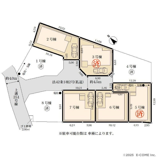 | 備考・制限等 | *開発道路(164.9平米)は持分各1/16ずつ *ゴミ置場(2.00平米)は市に移管予定です *北西側隣地所有の既存CB一部が本地に越境(将来是正の覚書有) *開発許可番号:相模原市指令(開調)第R06-1010号 令和6年5月20日 *開発変更許可番号:相模原市指令(開調)第R06-512号 令和6年10月21日 *開発検査済証番号:第R06-79号 令和7年2月5日 *開発区域面積:987.40平米 |