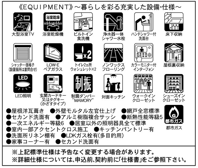 LDK15帖以上制震構造床下収納小屋裏収納複層ガラス食器洗浄機ガスコンロシステムキッチンカウンターキッチン3口以上コンロパントリー(食器・食品の収納庫)トイレ2ヶ所温水洗浄便座シャワー付洗面台浴室乾燥機追焚機能TV付浴室浴室に窓ウォークインクローゼットシューズインクローゼットTVモニタ付インターホンEV車充電設備