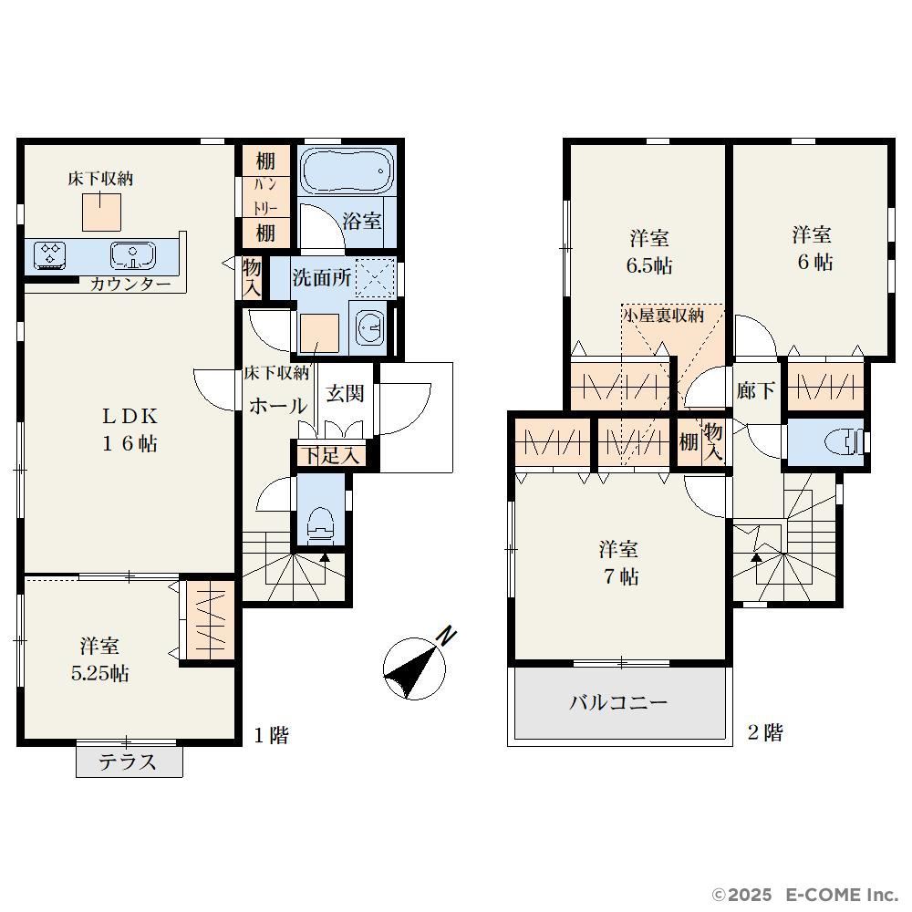 | 間取 | 3LDK~4LDK + 平屋(1、2号棟)、2階建(3~5号棟) | ||