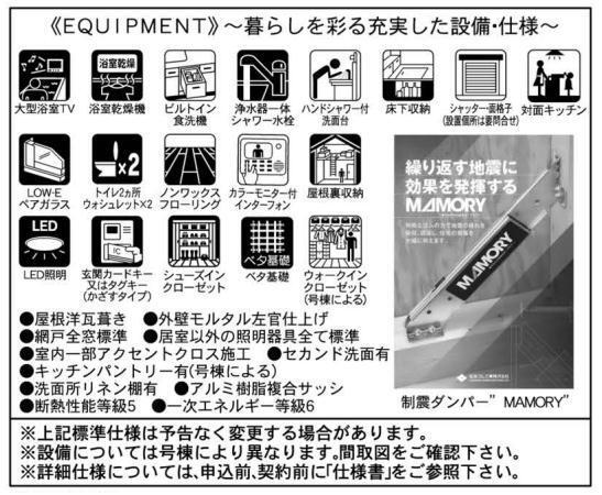 LDK15帖以上制震構造床下収納小屋裏収納複層ガラス食器洗浄機ガスコンロシステムキッチンカウンターキッチン3口以上コンロトイレ2ヶ所温水洗浄便座シャワー付洗面台浴室乾燥機追焚機能TV付浴室浴室に窓ウォークインクローゼットシューズインクローゼットTVモニタ付インターホンEV車充電設備