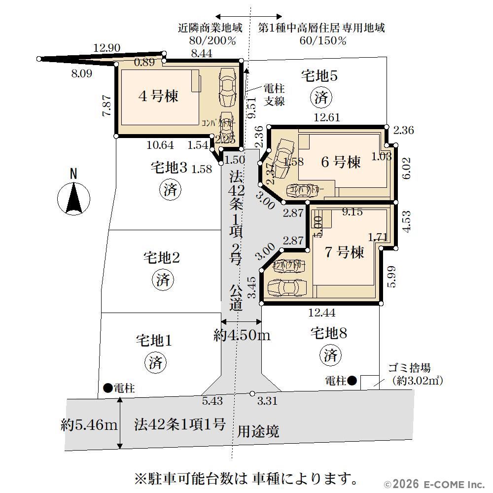 | 備考・制限等 | *開発許可番号:神奈川建指令厚土東610028号 令和7年6月30日 *開発検査済証番号:厚土東第650042号 令和7年10月31日 *開発区域面積:約1062.85平米 *開発検査済証取得 令和7年6月30日 *ゴミ置場(約3.02平米)は、持分を各1/8ずつ所有頂きます *開発道路(約151.78平米)は市に移管予定です |