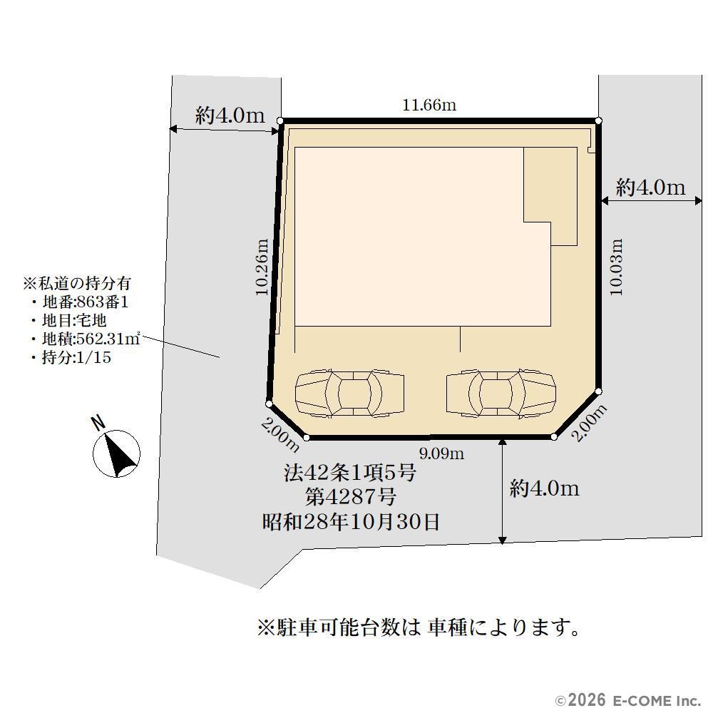 | 接道 | 北西側4M私道に接道 南西側4M私道に接道 南東側4M私道に接道 |