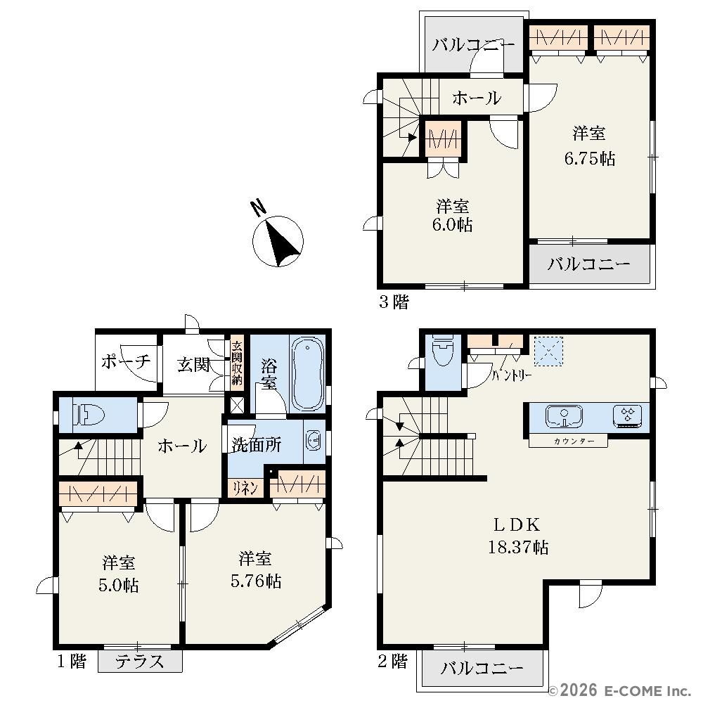 - ※完成予想図はいずれも外構、植栽、外観等実際のものとは多少異なることがあります。