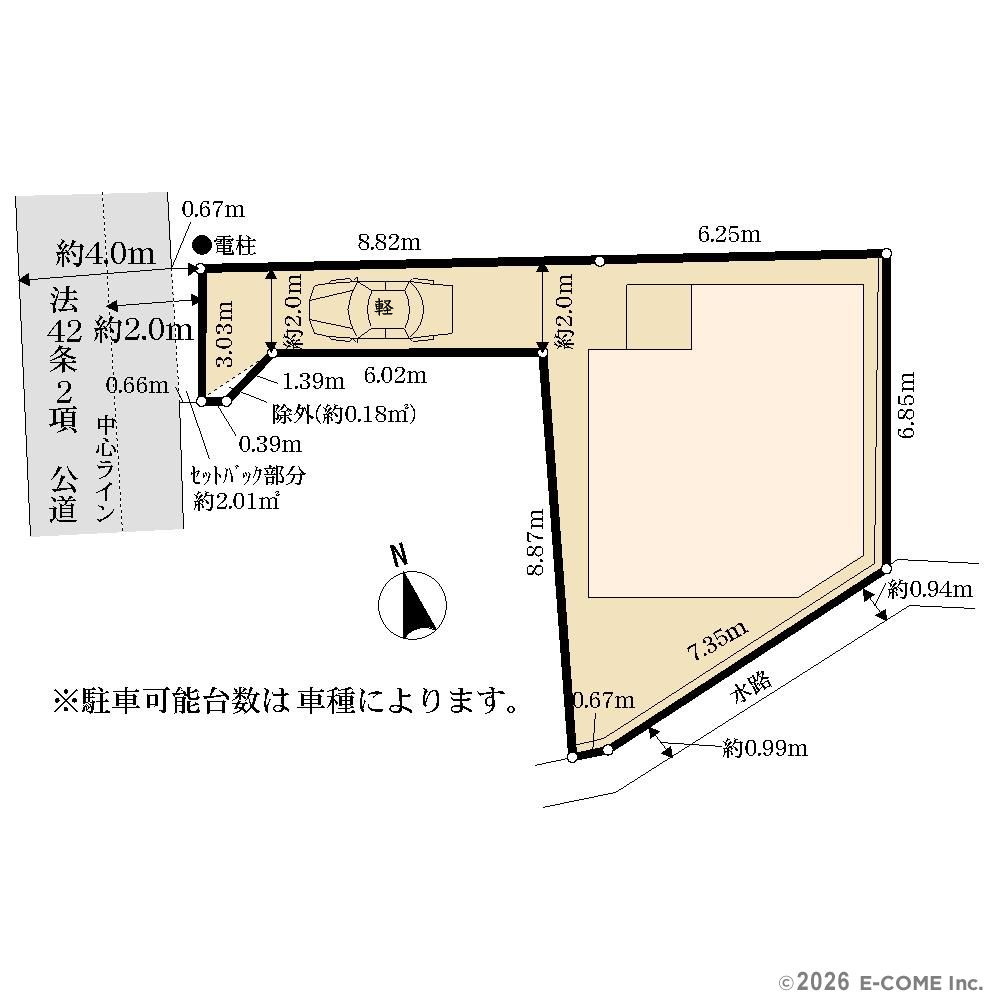 | 備考・制限等 | *南西側隣地上に存する雨樋、及びCB積の一部が本地へ越境(覚書有) *セットバック部分約2.01平米は持分を所有頂きます *建築確認対象面積は、南側隣地庇越境部分(約0.18平米)除外して申請 |