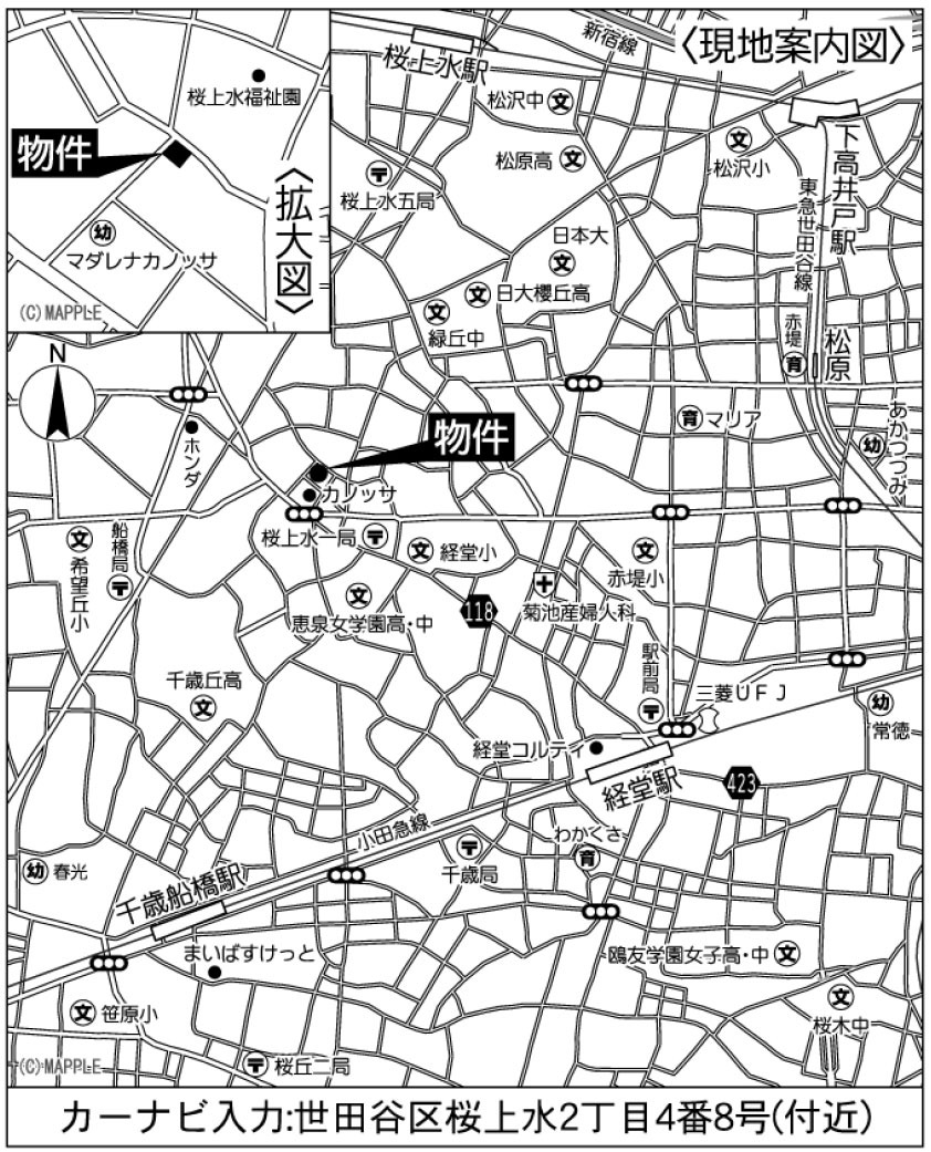 | 交通 | 小田急小田原線「経堂」駅徒歩16分 京王線「桜上水」駅徒歩18分 京王線「上北沢」駅徒歩20分 |