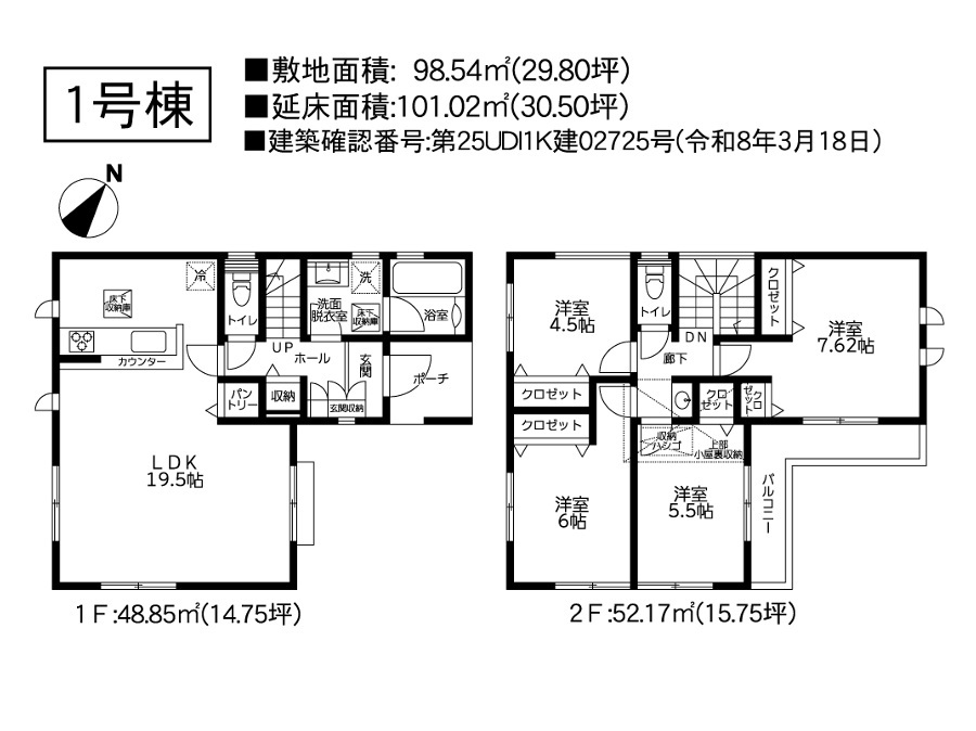 | 土地面積 | 98.54m² ~ 98.55m² (29.80坪~29.81坪) | ||
