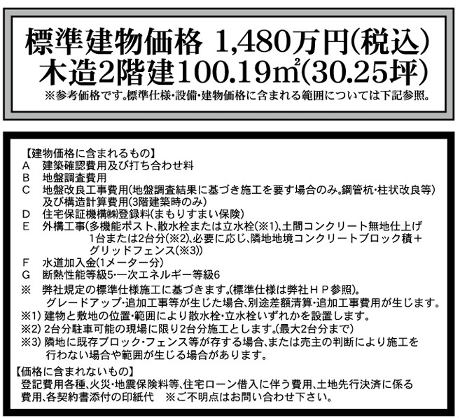 *標準建物価格(イーカム施工):1480万円(100.19平米、30.25坪、2階建)
