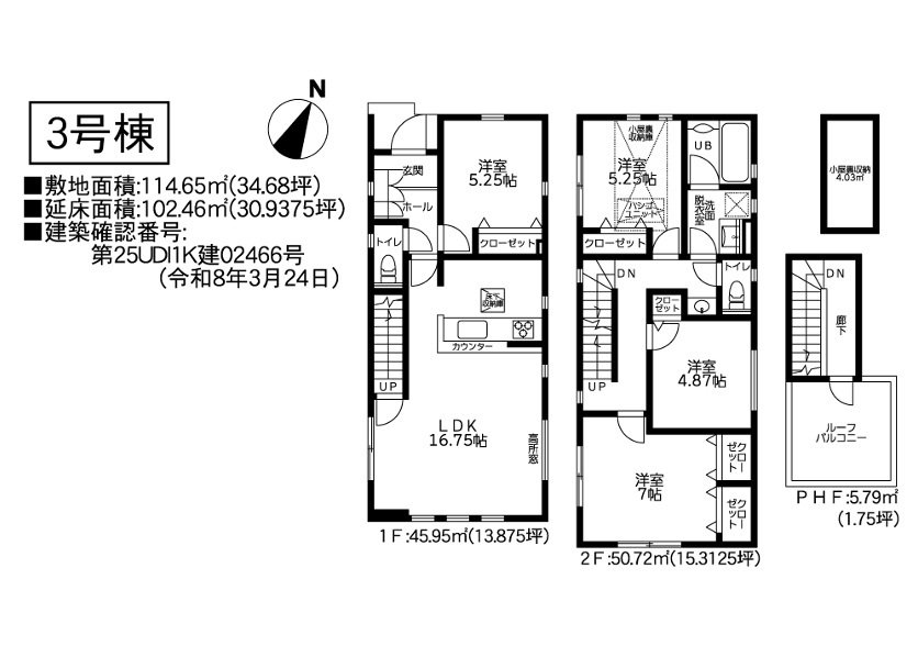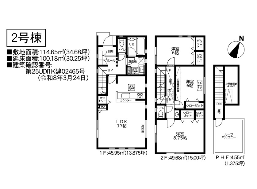 | 土地面積 | 114.65m² ~ 114.66m² (34.68坪) | ||
