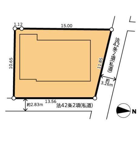 | 権利種類 | 所有権 | 接道 | 北側3.26M道路に11.85M接道 東側2.83M道路に13.56M接道 |