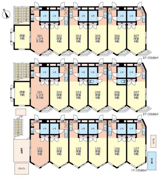 | 接道 | 北西側4M道路に10.51M接道 | 構造・規模 | 鉄筋コンクリート造 3階建て |