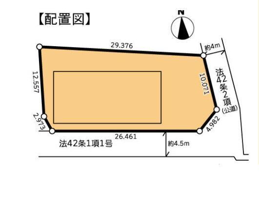 | 接道 | 東側4M道路に10.07M接道 南側4.5M道路に26.46M接道 |