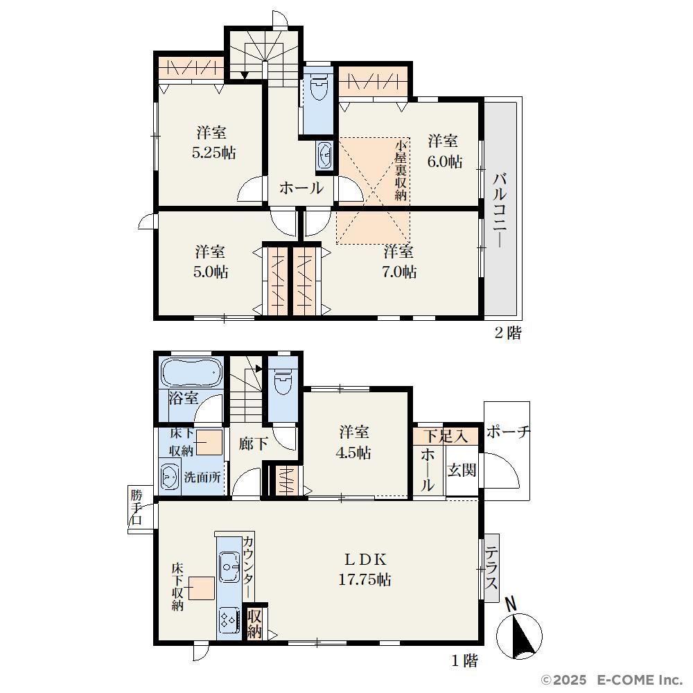 *イーカム建築の戸建てです(2023年築)、間取り:5LDK、2階セカンド洗面あり