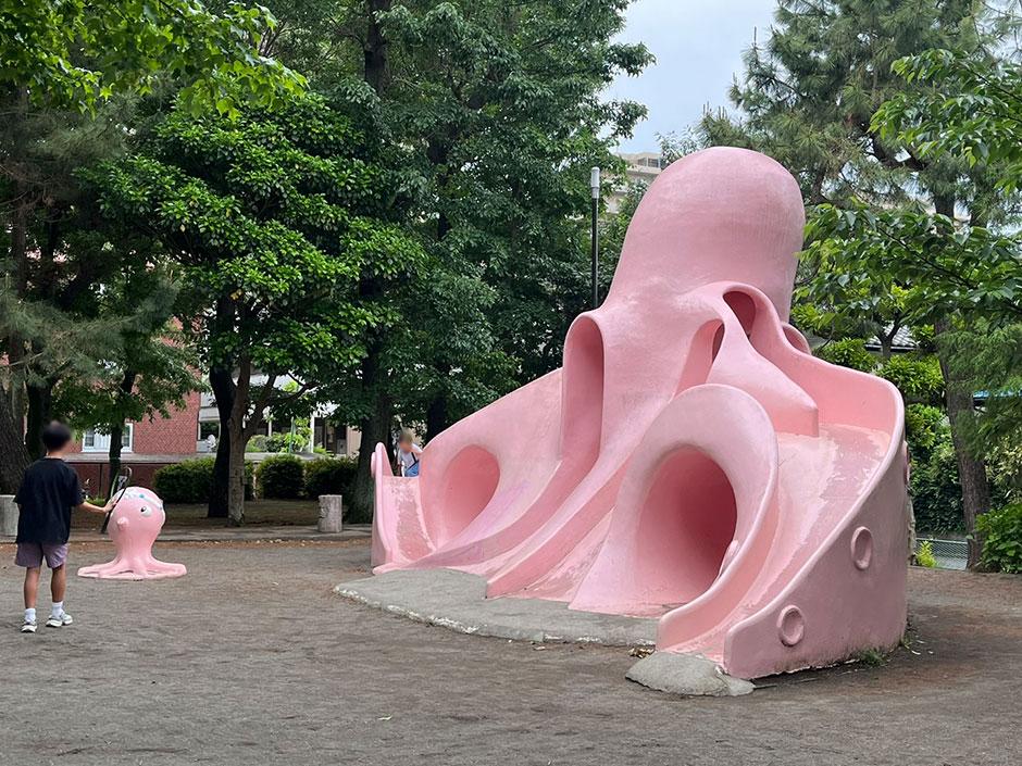 赤いタコの滑り台が目を引く澁谷原公園は、湘南台の住宅街にある親しみやすい公園です。大小のタコ遊具を中心に、ブランコや砂場、鉄棒などの遊具が整い、子どもたちの遊び場として賑わっています。緑に囲まれた空間は、保護者がゆったりと過ごすのにも最適です。向かいの「湘南台子どもの家」と合わせて利用すれば、天候に左右されず一日中楽しめます。地域の人々に長く愛される、温かみのあるスポットです。