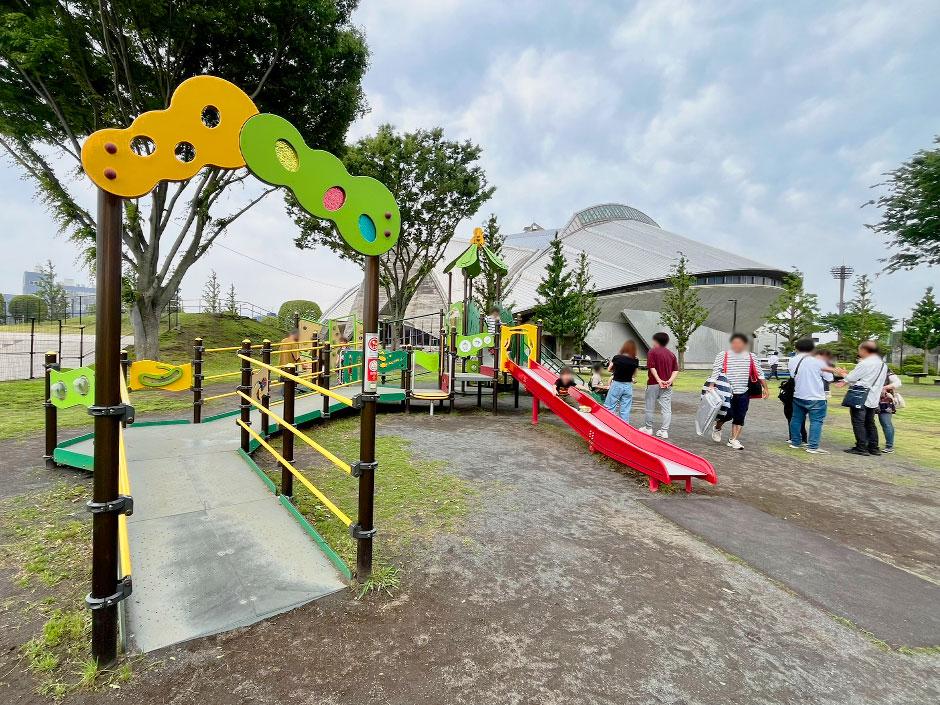 銀色に輝く近未来的な体育館が印象的な秋葉台公園は、スポーツと共生の理念が融合した総合運動公園です。サッカーやラグビーに対応した人工芝の球技場、屋内外のプール、トレーニングルーム、弓道場、サウナなど、多彩なスポーツ施設が整備されています。また、2021年には、誰もが楽しめるインクルーシブな遊具が芝生広場に導入され、車椅子利用者や体幹の弱い子どもたちも安心して遊べる環境が整いました。こもれび広場にはパブリックアートが展示され、自由広場ではバスケットボールや卓球が楽しめるなど、スポーツと文化が調和した空間が広がっています。