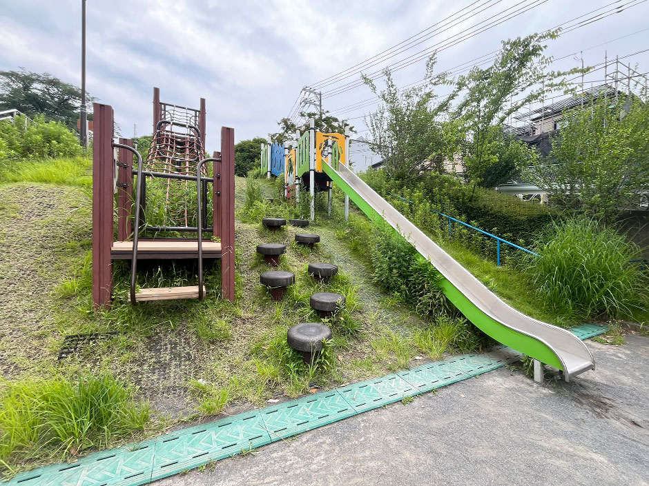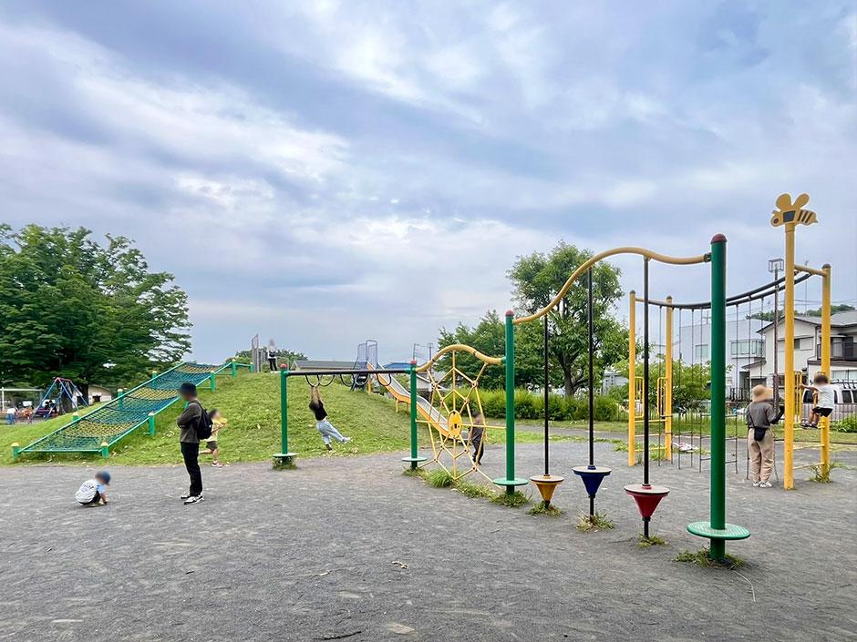 椚谷公園(くぬぎやとこうえん)は、鶴ヶ峰駅から徒歩12分ほどの場所に広がる、自然と遊び心に満ちた地域密着型の公園です。敷地内には小山を利用した滑り台や網のぼり、ジャングルジムや複合遊具などが点在し、遊具を巡るサーキットのような遊び方ができるのも魅力です。園路は1周360メートルあり、ウォーキングにも最適。広場では球技もでき、年齢を問わず多くの人が思い思いの時間を過ごしています。世代を超えて活用される、賑わいと安心感のある公園です。