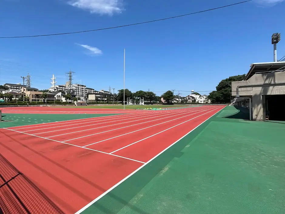 府中駅から徒歩約12分、寿町にある府中市民陸上競技場は、全天候型トラックを備えた日本陸連第4種L公認の施設です。ジョギングやウォーキングはもちろん、ハードルや跳躍の設備もあり、本格的な陸上練習も可能。ナイター設備や観覧スタンドも完備され、夜間の利用にも対応しています。小中高生向けのかけっこ教室やジュニアクラスも開催され、子どもから大人まで幅広く親しまれる運動施設です。