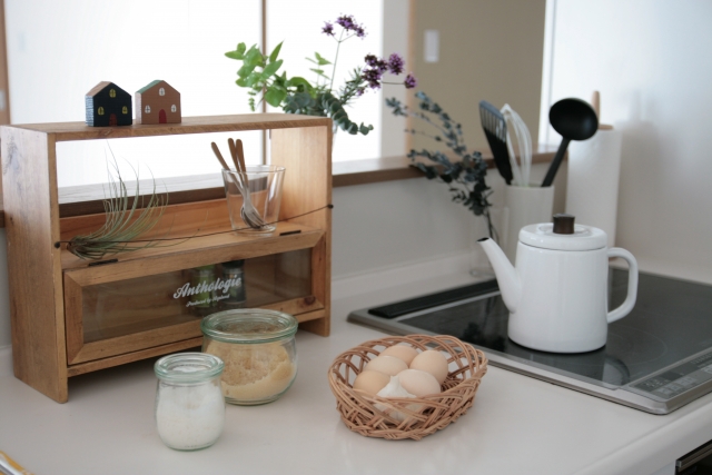 キッチンのワークトップはこまかな傷がついてカビやぬめりが発生しやすいので傷がつきにくい素材にしたり、部屋の壁紙はコーティングして水拭きできるものにするなど。