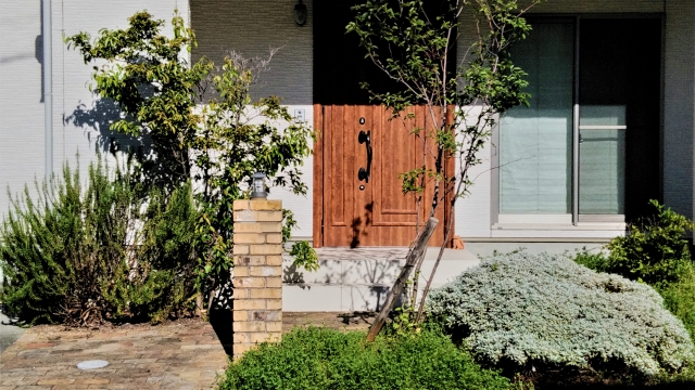 室内の観葉植物の他に、戸建てだからこそできるのが、玄関周りやお庭のシンボルツリーです。