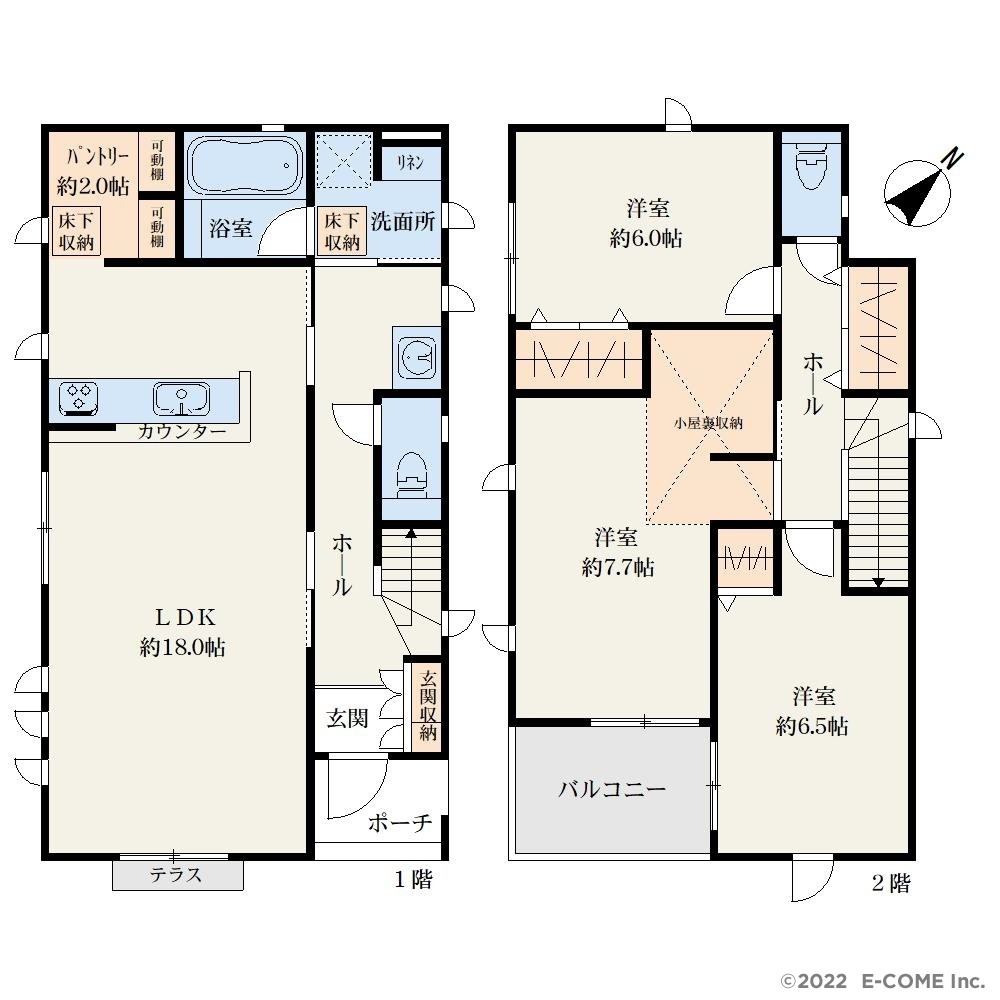 玄関からパントリーへ、パントリーからキッチンへ、という風に移動できます。
