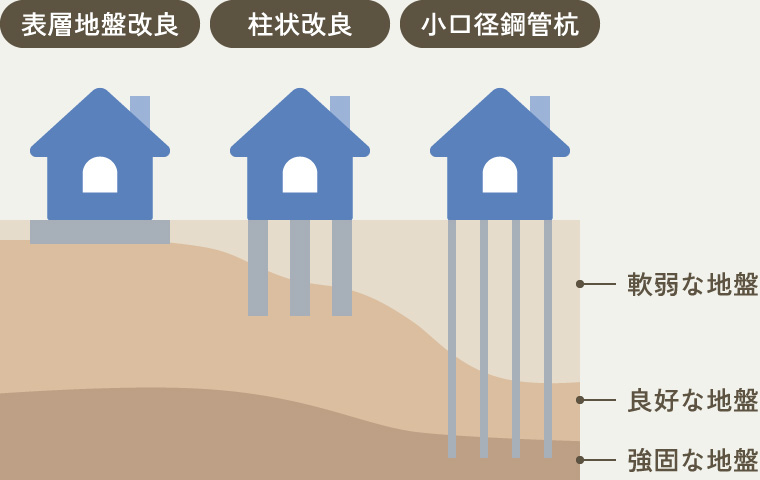 第三者機関による地盤調査・解析に基づき、適切な地盤改良を実施。