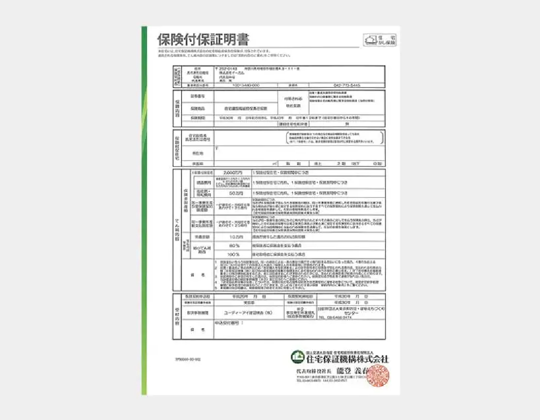 ダブルの安心。自社 建物10年保証+住宅瑕疵担保責任保険