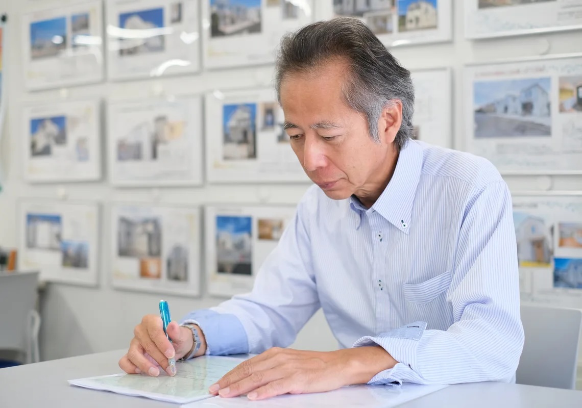 土地を仕入れる際に、欠点ばかりを気にするよりも、長所を活かしたら良い商品になるのではないかと柔軟に考えられる体制が出来ていることがひとつ、それと、仕入れたあとは、造成・設計・建築・販売の各担当者が一丸となって協力しあえる、つまり一貫体制が出来ている点だと思います。